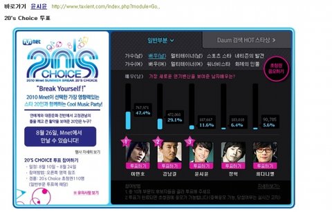 지금 엠넷 투웨니 초이스 투표중인데요!!!
