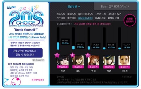 여러분도 20's choice 여자멀티테이너에 브아걸 가인 한표? ㅋ