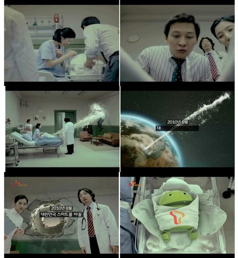 스마트폰 시장의 새로운 시작을 알린다는 의미의 안드로보이의 아니 안드로베이비와 그리고 그시작을 통한 넘치는 데이터통신 세상으로 바로 콸콸콸이라는 컨셉의 CF를 방영하게 된 것 입니다.
