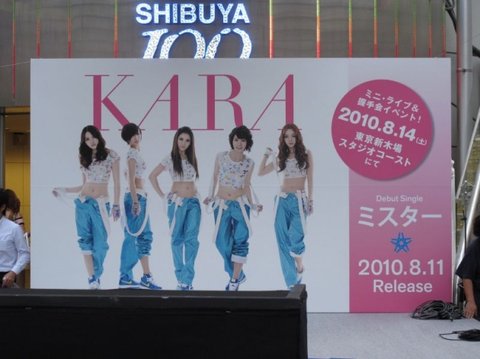 이 날은、「미스터」앨범 발매일이기도 해서、일본 KAMILIA들의 성지이기도한、시부야 타워레코드에 수 많은 팬들이 몰려간・・・것이 아니라 시부야 109건물앞에 게릴라 콘서트 무대가 세워졌고、잠시 후에 KARA사진이 들어간 대형판넬이 설치되었기 때문입니다・・・