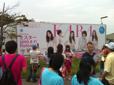 @gyuri88 「방금、 깜짝 놀랐어요! KARA사진이 있는 truck을 보았거든요。(>_<) 」