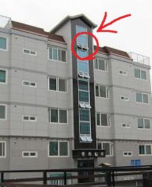 정확히 저곳. 통로 창틀 사이로 여자분이 메달려 있는거임. 안좋은 생각으로 뛰어내린것이