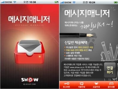 이렇게 SHOW메시지매니저 어플은 서비스가입신청을 하여야