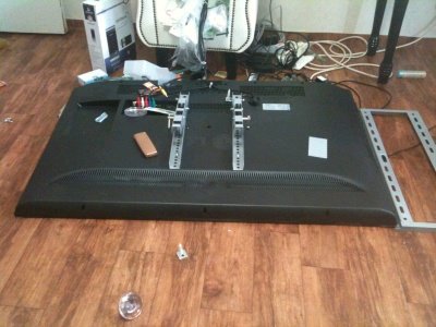 사진에 보시면 옆에 작은 못이 보이는데 저런 못 4개만으로 그 무거운 TV를 지탱하는 겁니다.