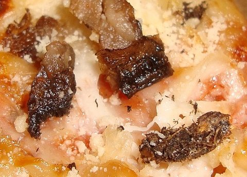사진 보시면 버섯토핑이랑 이상한 벌레 물체가 같이 구워진게 보이실거에요.