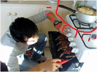 하지만 이내 머리를 활용하자 이래서는 고기 속까지 익지 않겠구나란 결론이 나왔습니다. 왜냐 돼지 립바베큐는 그냥 저 상태로 소스를 발라