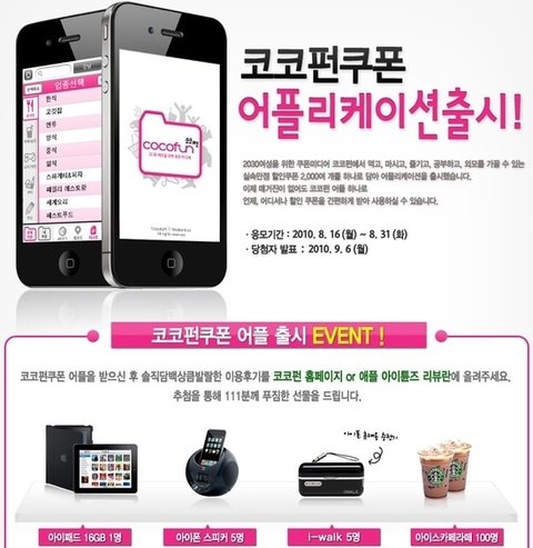 코코펀 어플을 받고 홈페이지에 후기/아이튠즈샵에 리뷰를 남기면 추첨을 통해~~~
