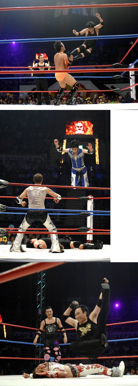 유재석은 "너무 고통스러우면 얘기하라"며 우려했다. <무한도전> 멤버들에게 레슬링 기술을 가르쳐 준 체리필터의 손스타는 "다치거나 힘들면 중단하자"고 진심으로 권했다. 하지만 모든 멤버들은 무대에 섰고, 성공리에 경기를 마쳤다.