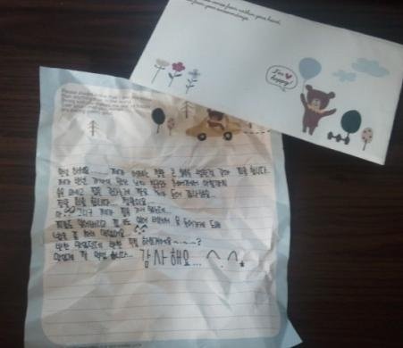 편지 뺏자마자 꾸겨서 버릴려다 인증샷때문에 다시 펴서 이렇게 사진찍고 올립니다..ㅠㅠ