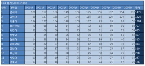 cpa대학순위와 최근 로스쿨 대학별 진학순위까지 찾아왔습니다
