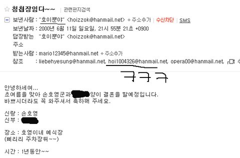 한 친구의 메일인데 손호영이랑 자기가 결혼한다는 청첩장임ㅋㅋㅋㅋㅋㅋㅋㅋ
