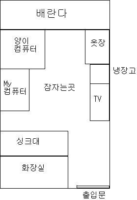 (대략 이렇게 생긴 자취방임. 평면도로 그려봤음)