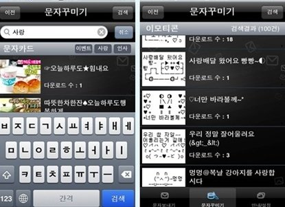이렇게 문자꾸미기에서 문자카드나 이모티콘을 활용해서 보내도 되니