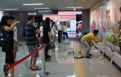 9호선 신논현역에 트릭아트(Trick Art) 기법을 활용한
