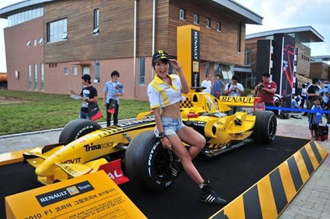 경기장에 들어서자마자 보이는 것은 르노 F1팀의 머신이었습니다. 레이싱 모델이 한껏 팬서비스 중이었는데. 모델 찍는 사람, 머신을 찍는 사람 다양한 진풍경이 벌어졌습니다.