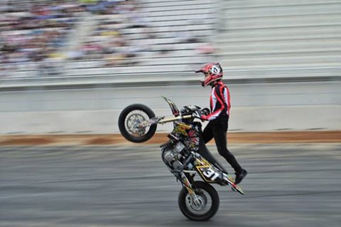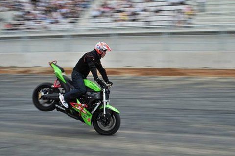 본 공연이 시작되기에 앞서 쇼 바이크들의 스턴트가 있었습니다. 이렇게 앞 바퀴 들고 달리는 것은 기본으로 다 하더군요. 번아웃의 경험으로는 자전거 앞 바퀴 들기도 쉽지 않던데… 저러고 몇 백M를 가더군요. 정말 대단!