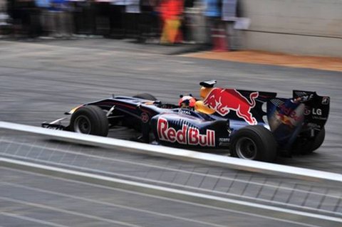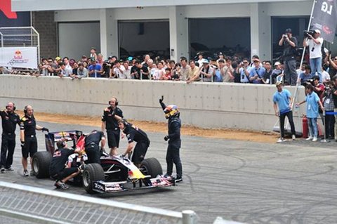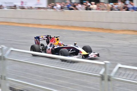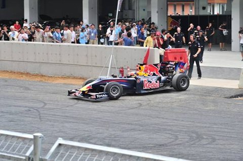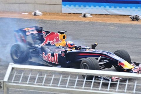 드디어 기다리고 기다리던 F1 머신이 등장했습니다. 레드불의 F1머신으로 현역 머신은 아닙니다. 이번 써킷 런의 데몬스트레이션을 위해 조립된 머신으로 최고의 컨디션은 아니지만 그래도 ‘나는 F1머신이다!’라고 당당히 소리치며 달리는 그 모습은 레이스 마니아들에게는 그야말로 감동 그 자체였습니다.