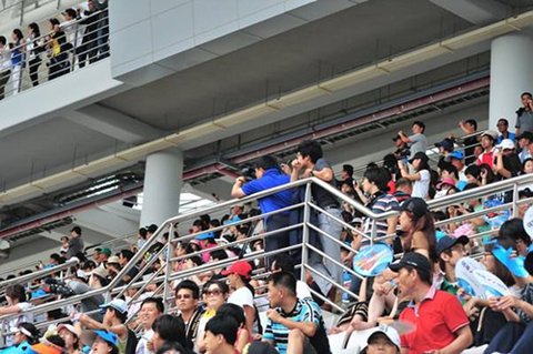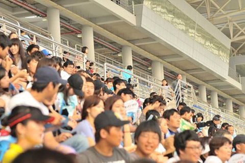 수많은 관중들이 몇 시간에 걸쳐 진행된 오프닝 세레모니…그리고 F1머신의 데모런 까지 지켜보고 그 다음 순서인 Mnet슈퍼 콘서트를 보기 위해 자리를 지키는 모습.