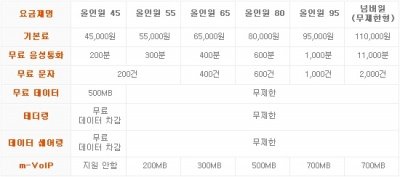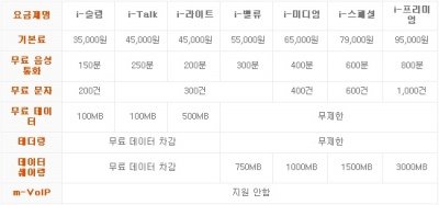 게다가 요금제 둘만 비교해도 그닥 KT쪽이 더 괜찮다는 생각도 들지 않습니다. 둘의 요금제를 비교해보면 아시겠지만 같은 요금제에서 데이터 쉐어링이 무제한인 SK텔레콤에 비해 KT는 제한을 걸어놨으며 m-voip를 지원하는 SK텔레콤의 무제한과는 다르게 KT는 아에 지원을 하지않는 것을 볼 수 있죠..