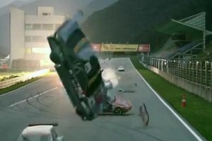 날라가는 차가 검정차입니다!밑에 있는 차가 주황차(남자가 탄차)!)
