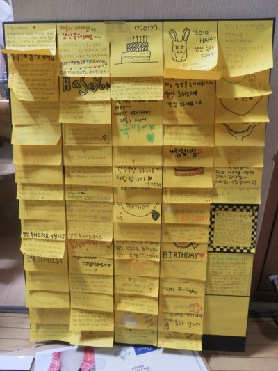 그리고 포스트 잍을 반 아이들에게 다 나눠줌