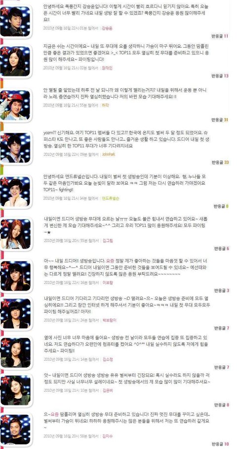 아 강승윤 글 너무 귀엽게 썼어요 ㅋㅋㅋ허각씨도~~ ㅋㅋ 드디어 오늘이네요!!!!!!! 다들 잘했으면..ㅜㅠ