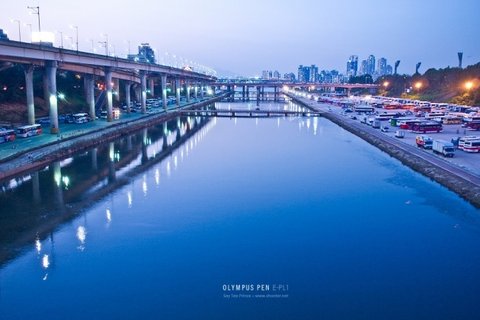 삼성교 옆으로는 주차장에 주차된 차들과 탄천 옆으로 흐르는 풍경이 장관인데요~
