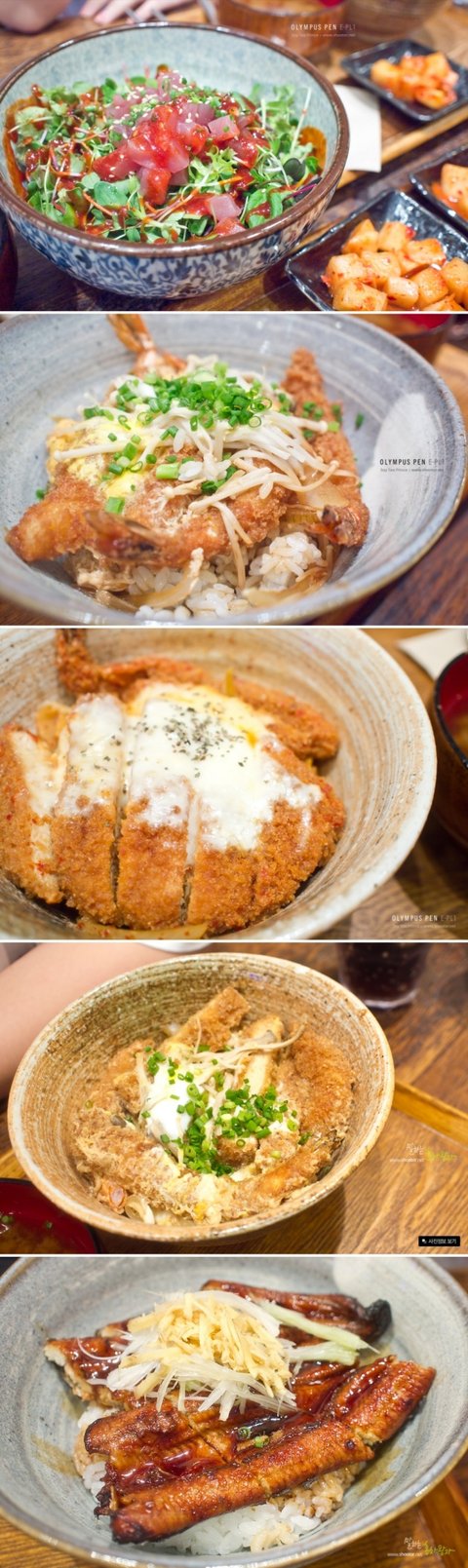 돈까스 새우튀김 덮밥, 김치 치즈 콤비동, 장어덮밥, 채소 회 덮밥 등 푸짐하게 시켰어요. ㅎㅎㅎ