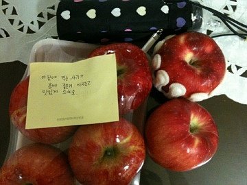 근데 일주일전부터 문앞에 사과 한개씩 있었다고 함 ㅋㅋ