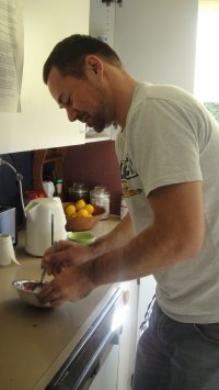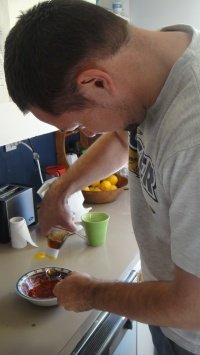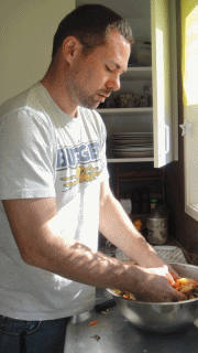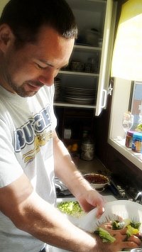 김치양념만들고있는리암, 저기집어넣고있는건피쉬소스임