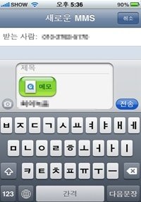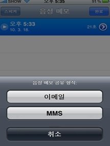 이렇게 MMS을 눌러 음성문자를 보낼 수 있다는^^