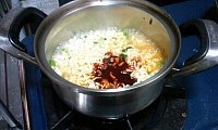 2 . 팔팔끓는물에 라면과 후레이크 투입 !
