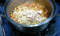 물을 따라 버린후 3~4번 조리까지 , 즉 스프를 넣고 참치를 넣고 쪼리고 완성시키는 시간까지는 딱 40초가 적당하다
