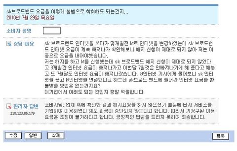 안녕하세요 저는 이번 7월달 까지 SK 브로드밴드를 사용한 소비자입니다.