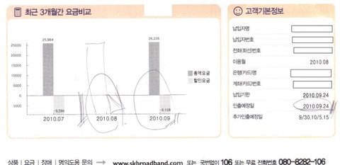 그런데 갑자기 SK 인터넷 청구서가 9월달에 나왔습니다.