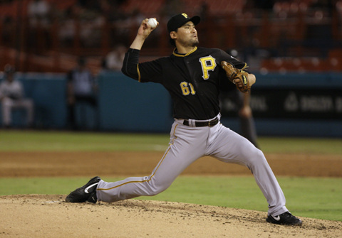 ▲ 2일 플로리다 말린스와의 경기에서 역투하고 있는 박찬호. 피츠버그 박찬호가 새로운 역사를 썼다.