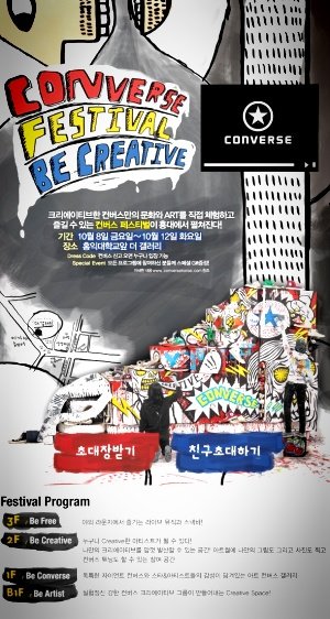 홍대앞 더 갤러리에서 금요일부터 열리는 컨버스 페스티벌 가셔도 좋으실듯 하네요~