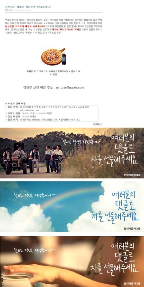 어제도 들어가보니 지금은 기프트카 캠페인에 대한 감상평을 받더라구요..