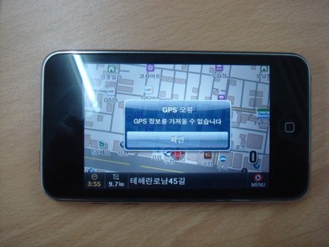잠시 후, 'GPS 오류' 메세지가 뜹니다. 'GPS 정보를 가져올 수 없습니다'
