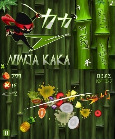 닌자가 나와서 화면에 있는 파인애플 키위 메론 사과 등의 과일을 잘라서