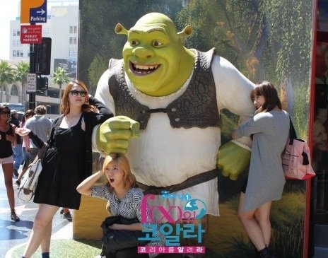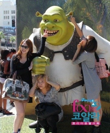 귀여운 슈렉과 함께 사진찍고이는 멤버들~