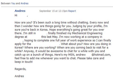 페이스북으로 엔드류에게서 긴~~~~~ 메세지가 왔음.