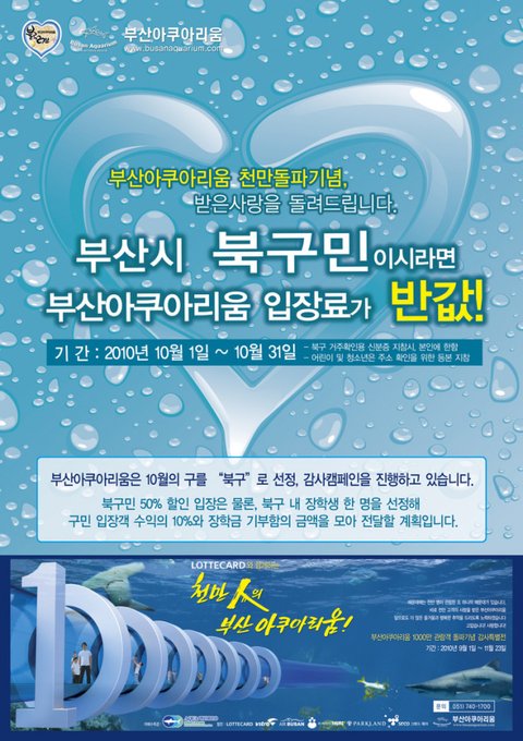 부산 아쿠아리움이 1000만명 돌파 기념으로 부산 북구 구민들에게만ㅠ