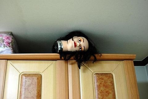 천천히 장롱을 올려다보니 저렇게 왠 여자가 장롱위에 모 로 누워있는게 아니겠음??