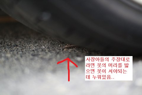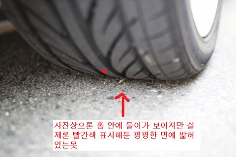 (일반적으로 3cm 나 되는 못이 길에 있어도 못이 누운상태로 있기 때문에 차가 밟아도