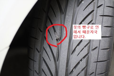 타이어에 못이 박힌 상태였습니다.
