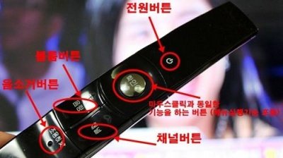 보통 텔레비전 리모컨의 경우, 작은 글씨로 기능이