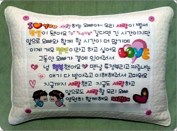 (베게로 만들었음. 처음엔 안고 자더니, 잠버릇이 험해서 모서리 단추 떨어진담에는 옷장위에 모셔둠)