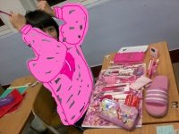 갑자기 옆에있던 친구가 분홍색 조공을 해왔음