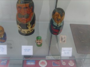 닉슨, 부시 부자, 존슨 등 미국 대통령 선거 후보자들의 피규어 비율이 높았고 다른 국가 지도자들의 것들도 많았습니다. 러시아 정계인사들의 마트로시카나 바비인형처럼 만들어진 힐러리 클린턴의 피규어도 재미있습니다. 세계인에게 큰 가십거리를 안겨준 클린턴 전 대통령의 르윈스키 사건을 풍자한 '클린턴 오프너'도 상당히 인상적이었습니다.